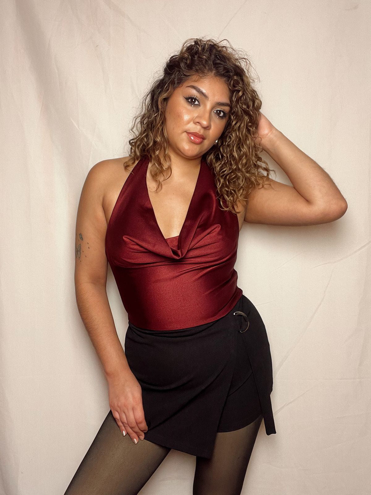 Croptop drapeado burdeo